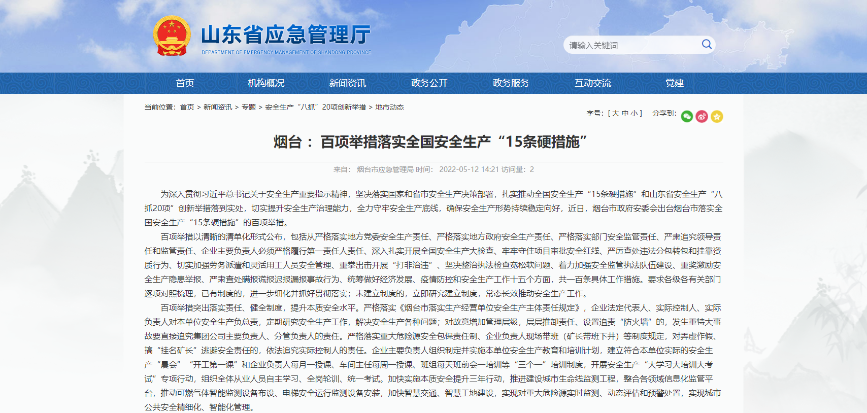 煙臺 :百項舉措落實全國安全生產(chǎn)“15條硬措施”