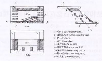 這種方法的關鍵是頂部天井,因為天井的間距決定了采場頂部鑿巖的推進長度。