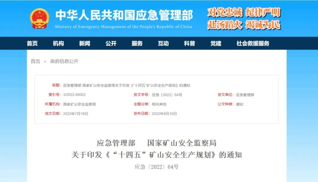 應(yīng)急管理部|國家礦山安全監(jiān)察局關(guān)于印發(fā)《“十四五”礦山安全生產(chǎn)規(guī)劃》的通知