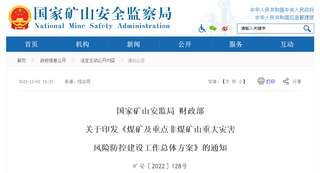 國家礦山安監(jiān)局 財政部關于印發(fā)《煤礦及重點非煤礦山重大災害風險防控建設工作總體方案》的通知