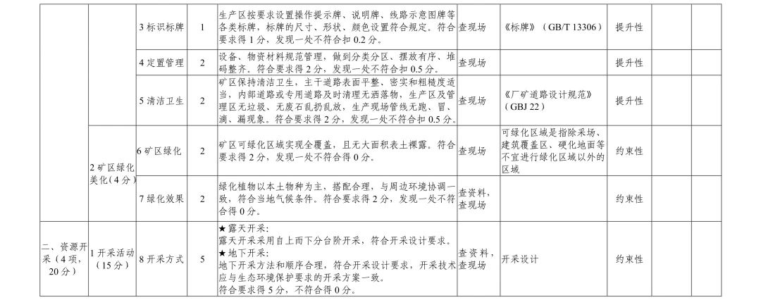 (二)內(nèi)業(yè)評估。評估組審核礦山企業(yè)提交的自評估報告等資料,對評價指標(biāo)先決條件進行審定。相關(guān)內(nèi)容、材料缺失時,通知礦山企業(yè)補充或重新提交。經(jīng)初步評估,討論確定現(xiàn)場評估重點,告知礦山企業(yè)現(xiàn)場評估時間。